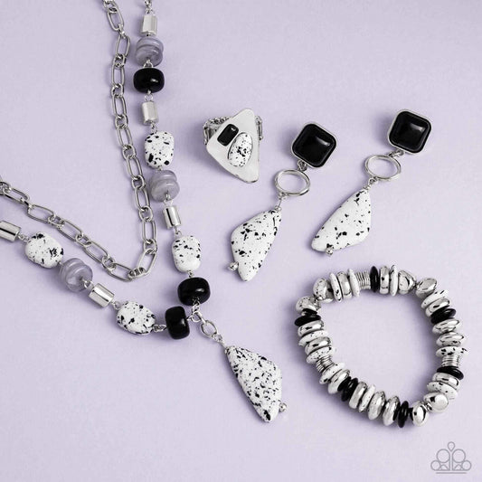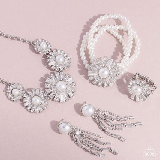 A Finishing Touch 2 Piece Set: Running Out of STEAMPUNK - White Necklace & I Have a STEAMPUNK - White Earrings -April 2023 Fashion Fix