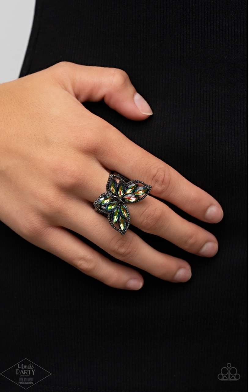 A Finishing Touch Fluttering Fashionista: Multi Oil Spill Butterfly Ring - Pink Diamond Life of The Party Exclusive
